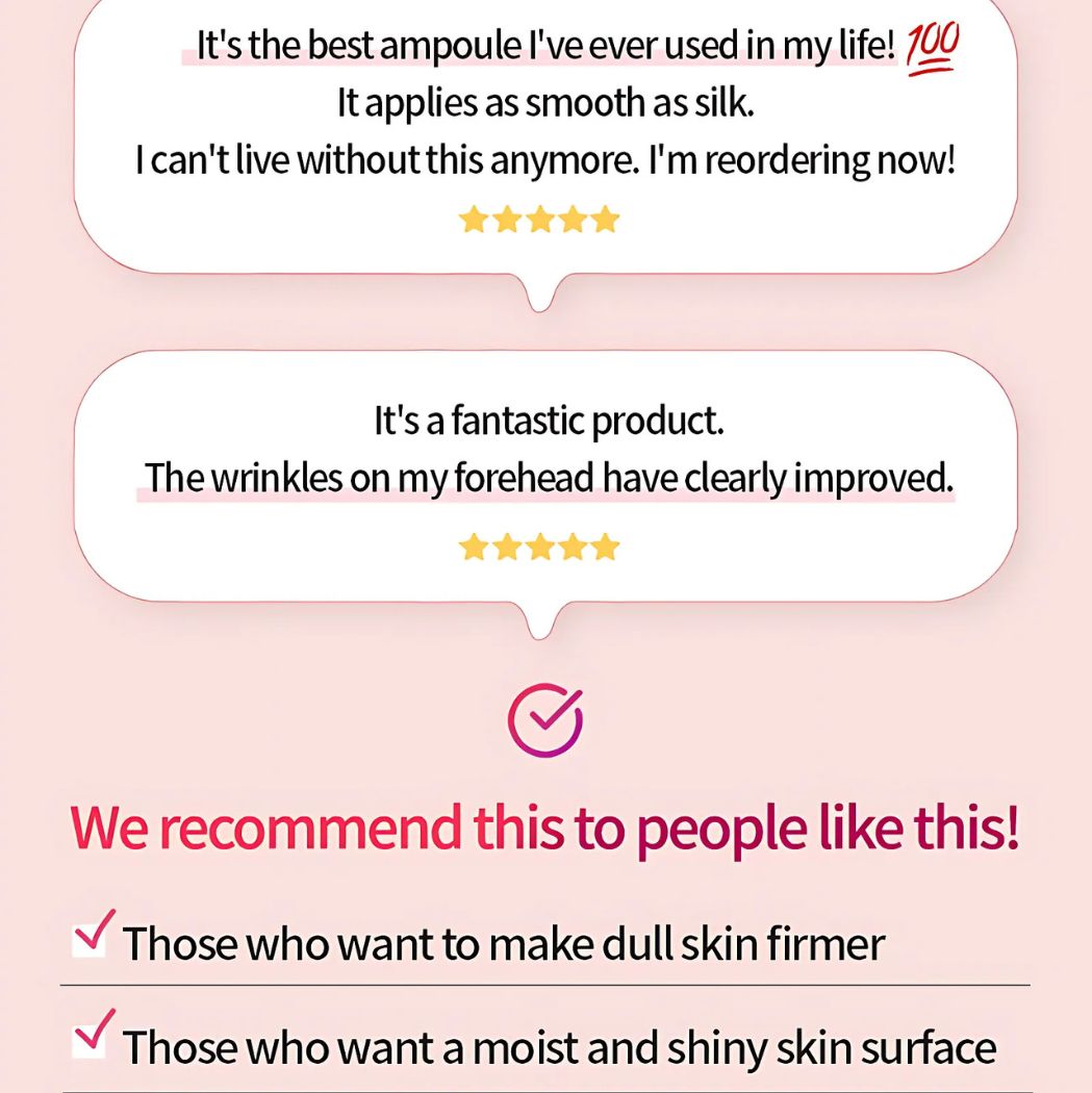 - One bottle a day of this ampoule provides all-day skin care, including whitening, wrinkle reduction, and improvement.