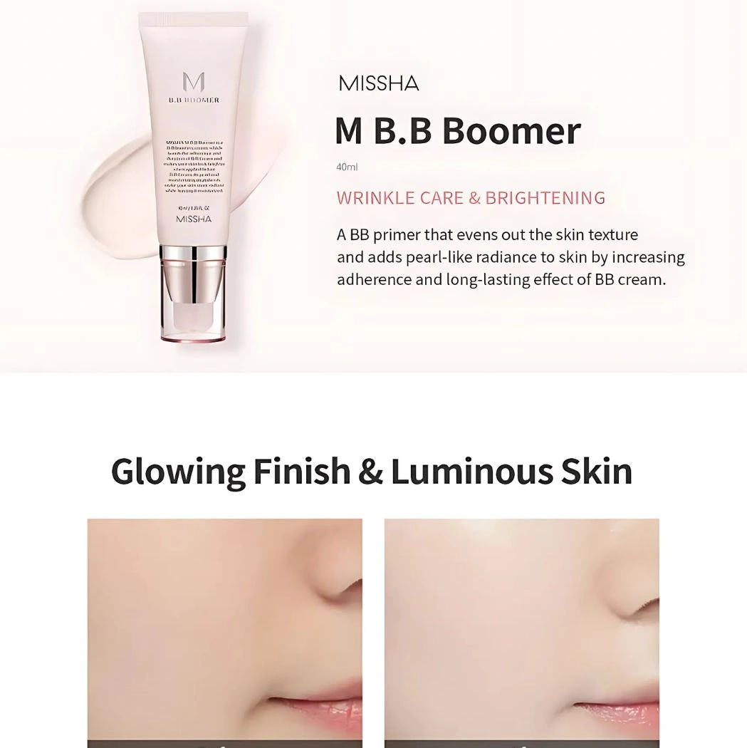 Amazing Product! If you want your skin to glow like you just had a spa facial, try Missha M B.B. Boomer! This primer adds a delicate, pearlescent glow that instantly brightens my face.